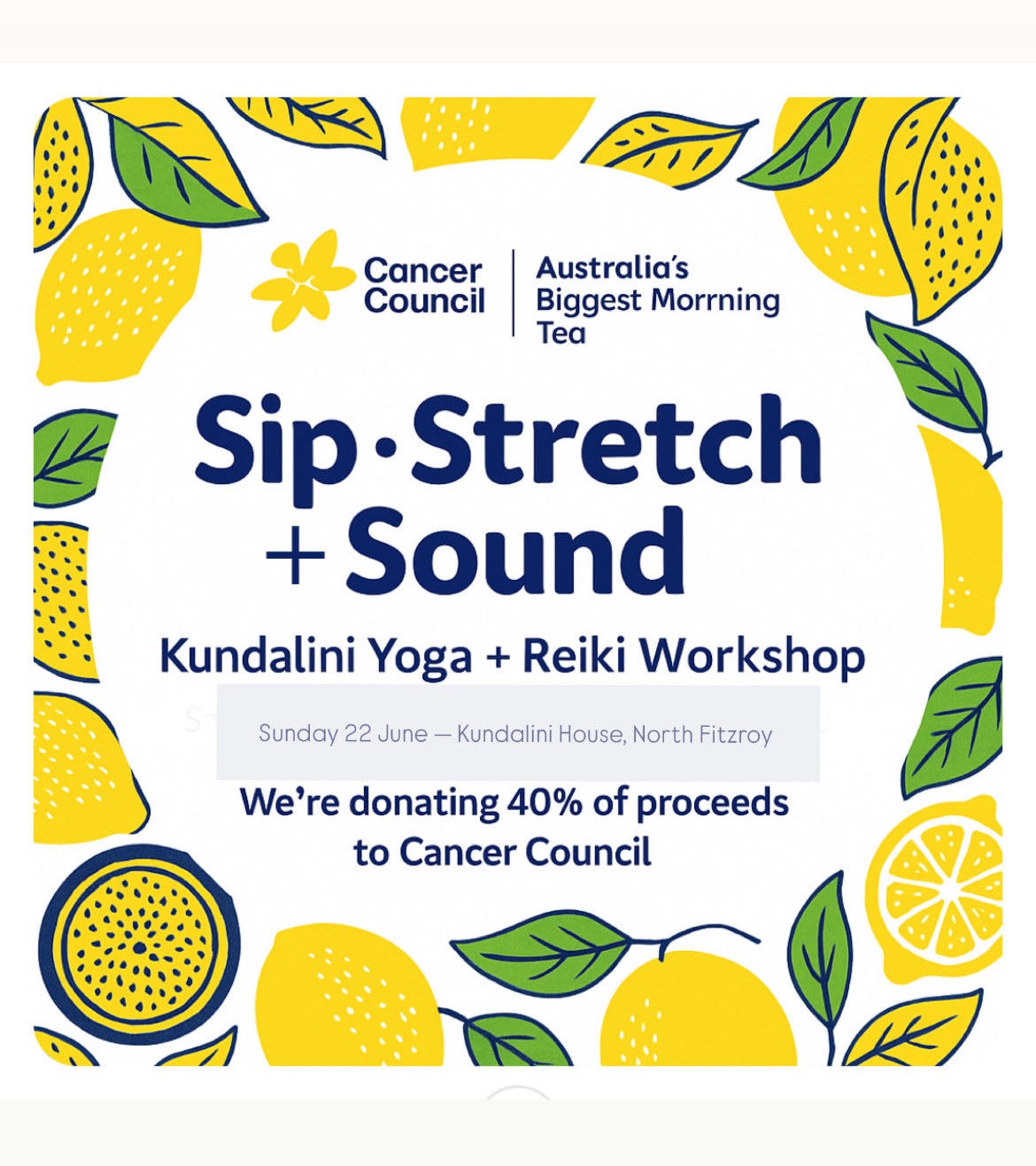 Join me, Abbey Fox and the team for a heartwarming Sunday as we Sip, Sound, and Stretch our way through the Winter Soulstice, raising funds for the Cancer Council’s Biggest Morning Tea.
