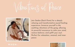Gong Sound Bath: Vibrations of Peace Event time: 2.00pm- 3.15pm Arrive 15 min early to give yourself time to settle in. December 6th @ 2:00 pm-3:15 pm - Book Now  Find 2026 Dates Below! Join Saskia (Sach Prem) for a deeply relaxing and transformative sound healing experience. Immerse yourself in the soothing vibrations of the [...]