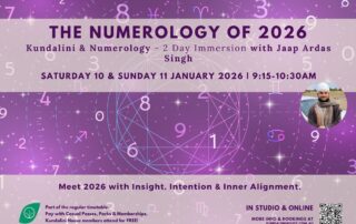 The Numerology of 2026 Teacher: Jaap Ardas Singh Dates: Saturday 10 January & Sunday 11 January 2026Time: 9:15am – 10:30amLocation: Kundalini House Studio + Online Event Description This two-day Numerology and Kundalini Yoga Immersion explores the themes and teachings of 2026, guided by the principles of Karam Kriya (Yogic Numerology) and supported by the embodied practice [...]