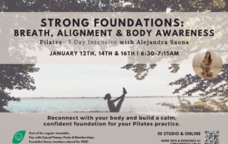 Strong Foundations: Breath, Alignment & Body Awareness Teacher: Alejandra Saona Dates: Mon, December 12; Wed, December 14 and Fri, December 16, 2026Time: 6:30am - 7:15am Location: Kundalini House Studio + Online Event Description Strong Foundations: Breath, Alignment & Body Awareness is a 3-day Pilates Intensive designed to bring clarity, confidence, and ease into your practice. If you’ve [...]